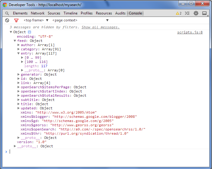 It’s really fun in creating your own search engine for your own blog. I did it and I’m really excited to share it with you. Besides that, I learn some useful concepts like JSON parsing in javascript and using XMLHttpRequest2. So what can you learn from this post? I’m posting this to make you understand how to play with Feedburner feeds. How to parse JSON format data in your program using plain javascript(without any libraries) and finally few javascript DOM related programming.